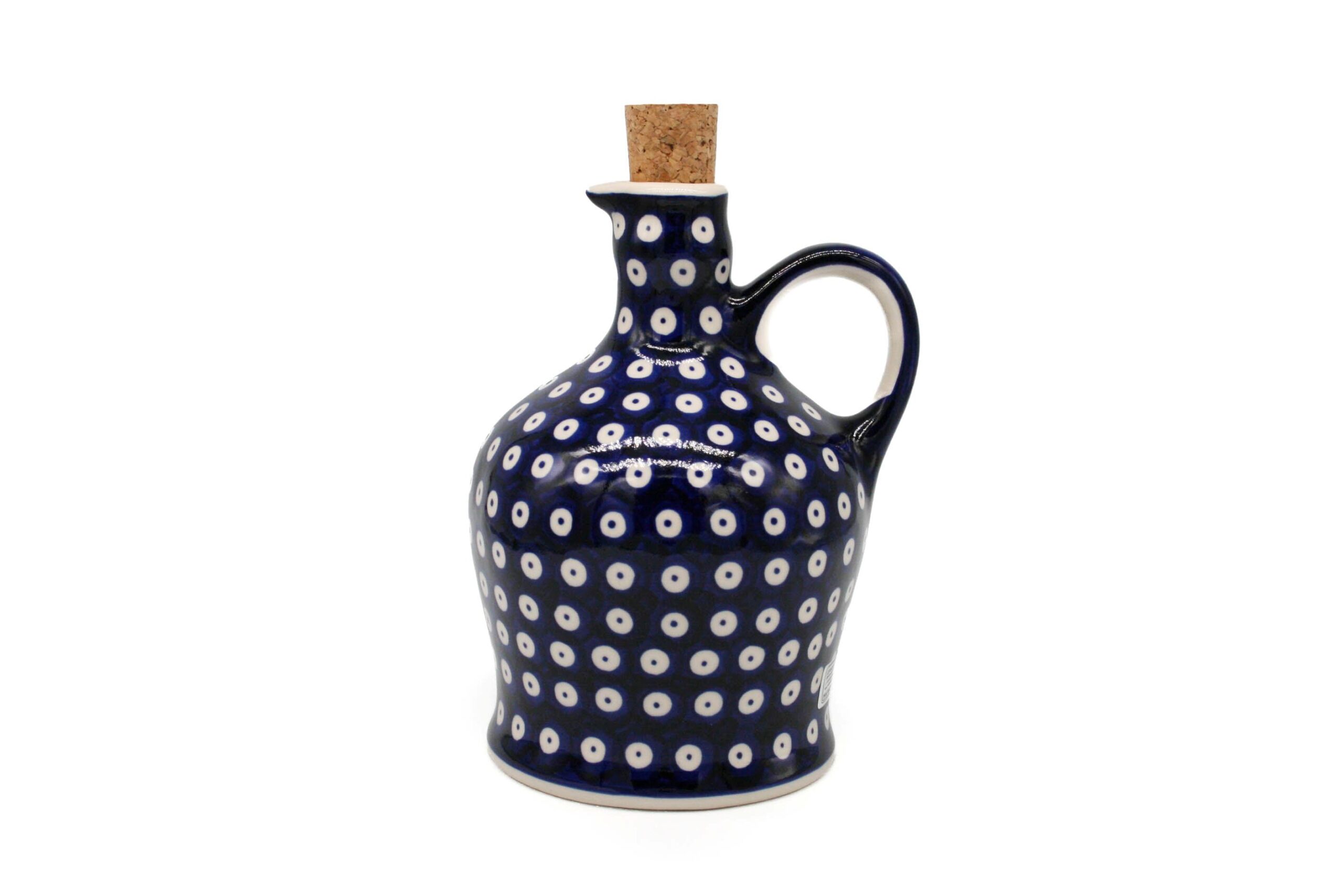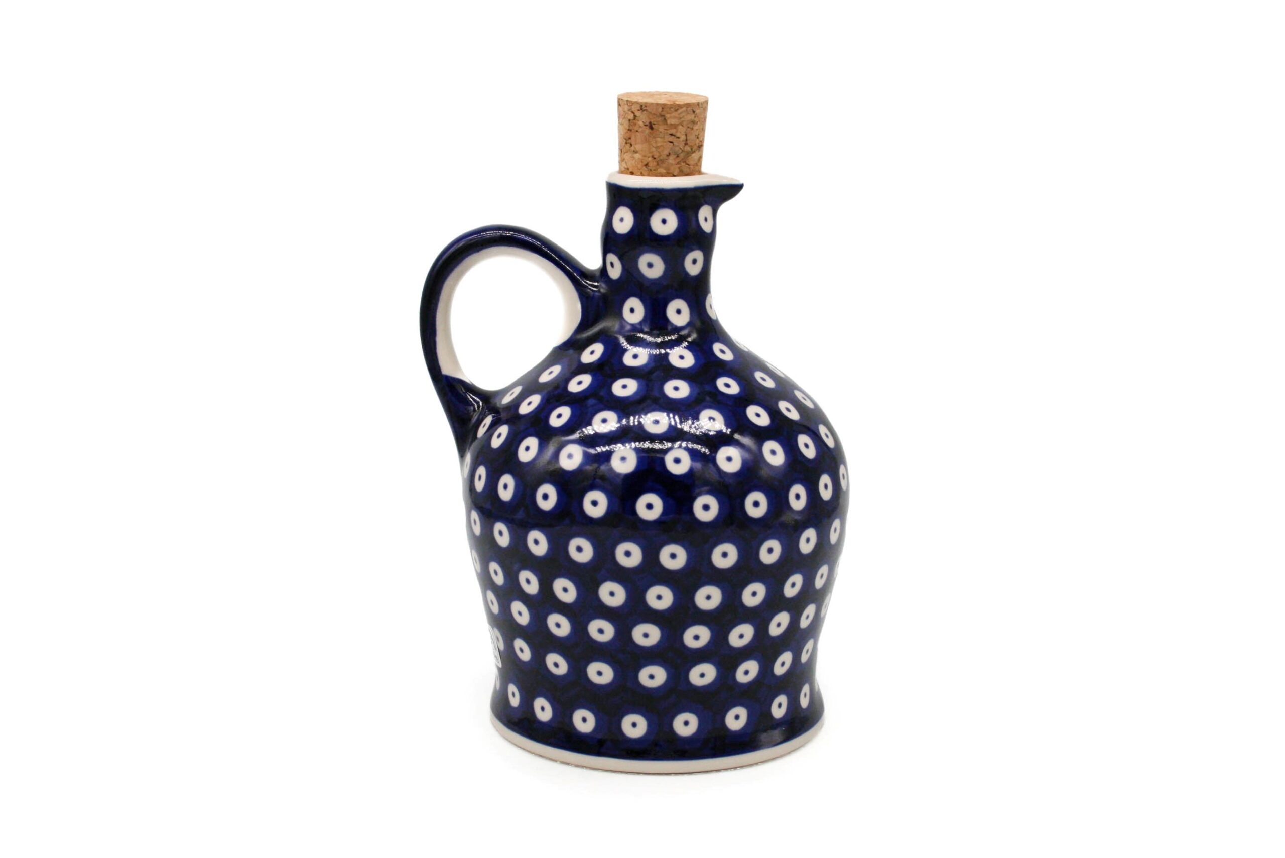 Ręcznie malowana butelka ceramiczna udekorowana bolesławieckim wzorem. Butelka jest ręcznie malowana i formowana, a następnie wypalana w piecu zgodnie z tradycją ceramiki bolesławieckiej. Ceramika bolesławiecka cechuje się trwałością i jest bardzo dobrej jakości. Butelka przyda się jako pojemnik na oliwę, ocet, wino czy inne płyny. Niecodzienny kształt i wzór butelki sprawia, że może okazać się wyjątkowym prezentem dla bliskiej osoby.