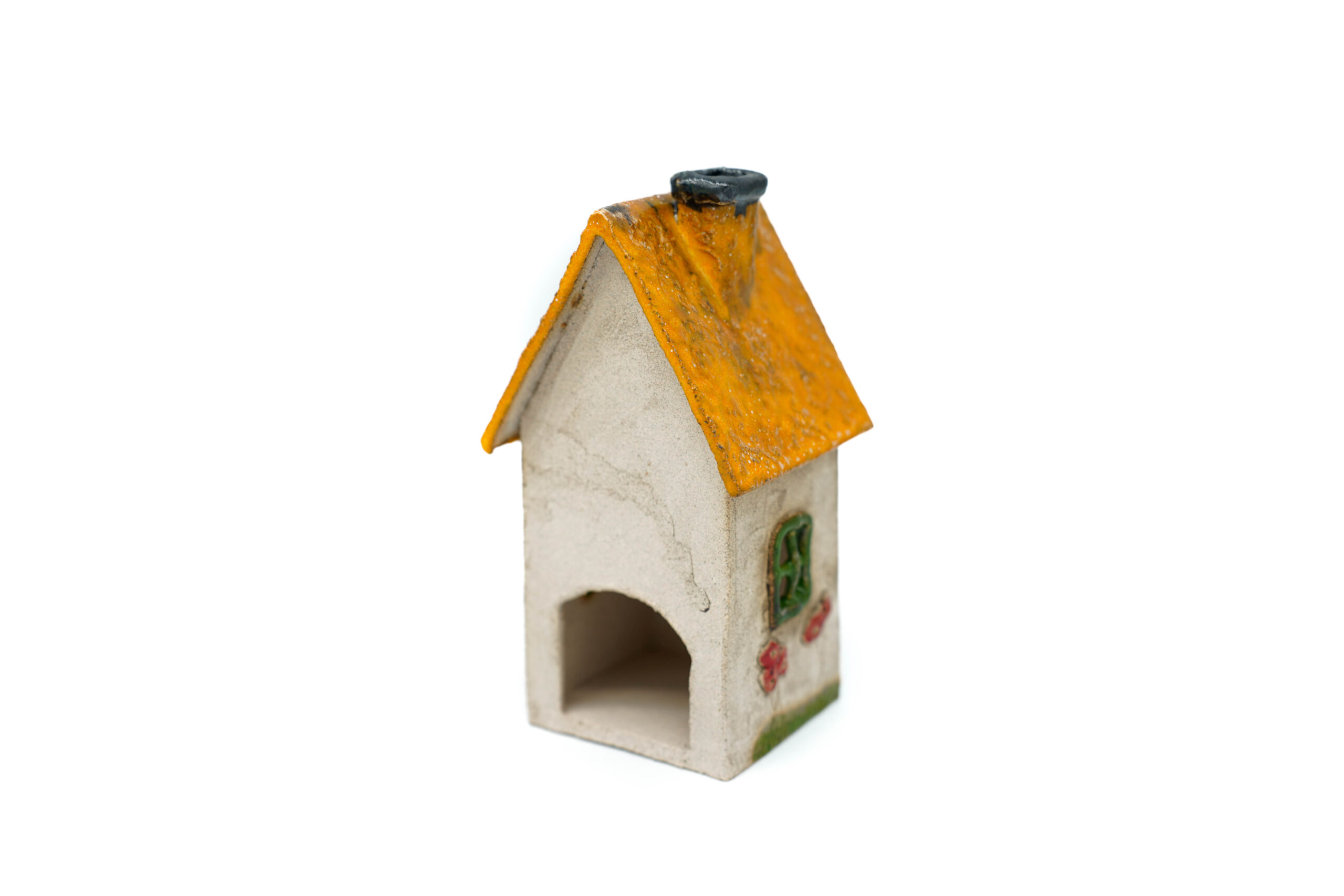 Domek ceramiczny na świeczkę – Pomarańczowy dach