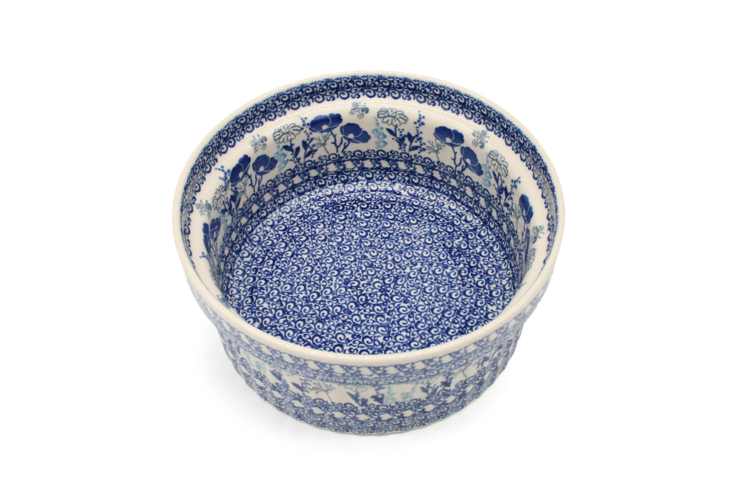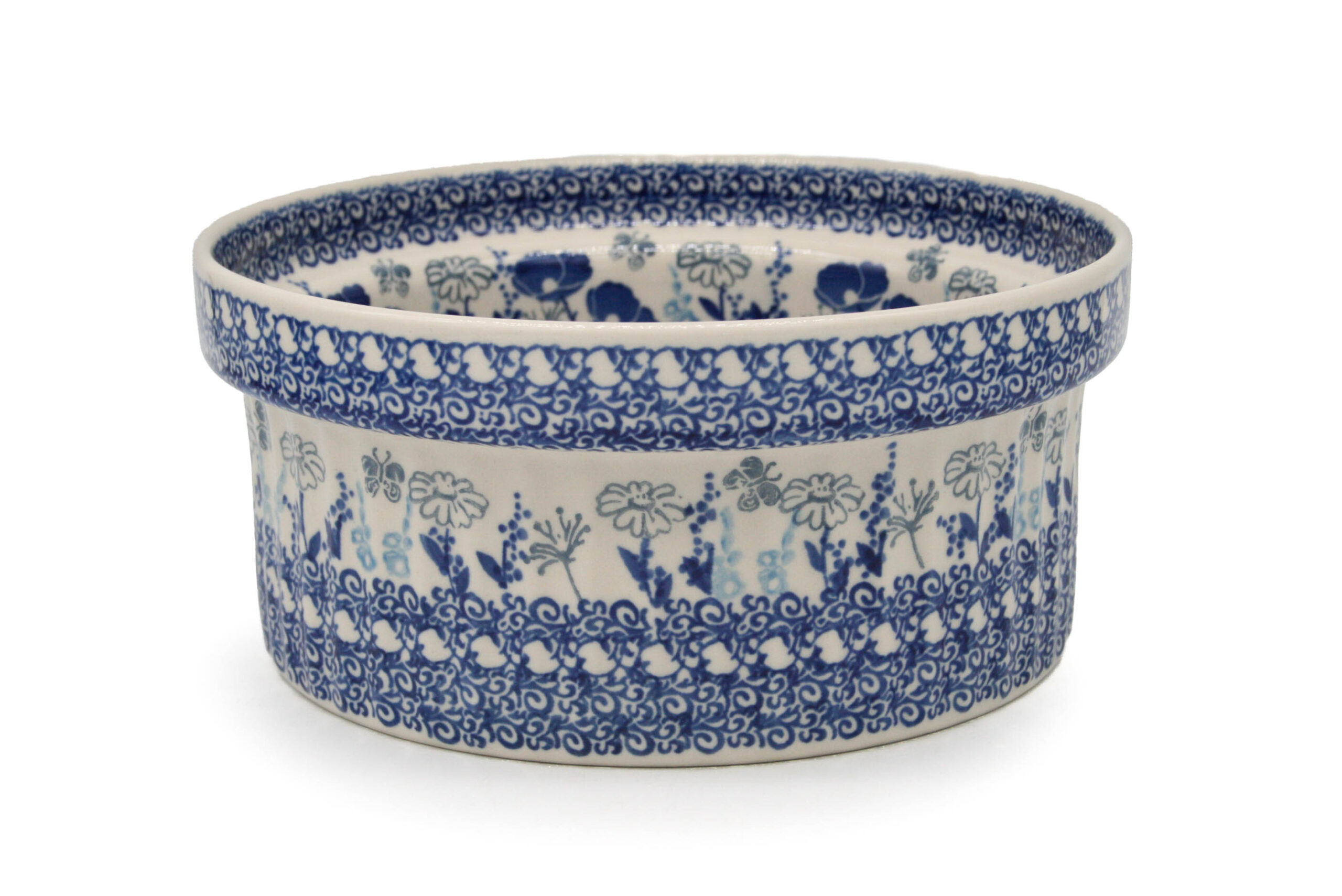 Forma na ciasto – suflet Niebieskie Kwiaty i Szary Motyl, Ceramika Bolesławiec
