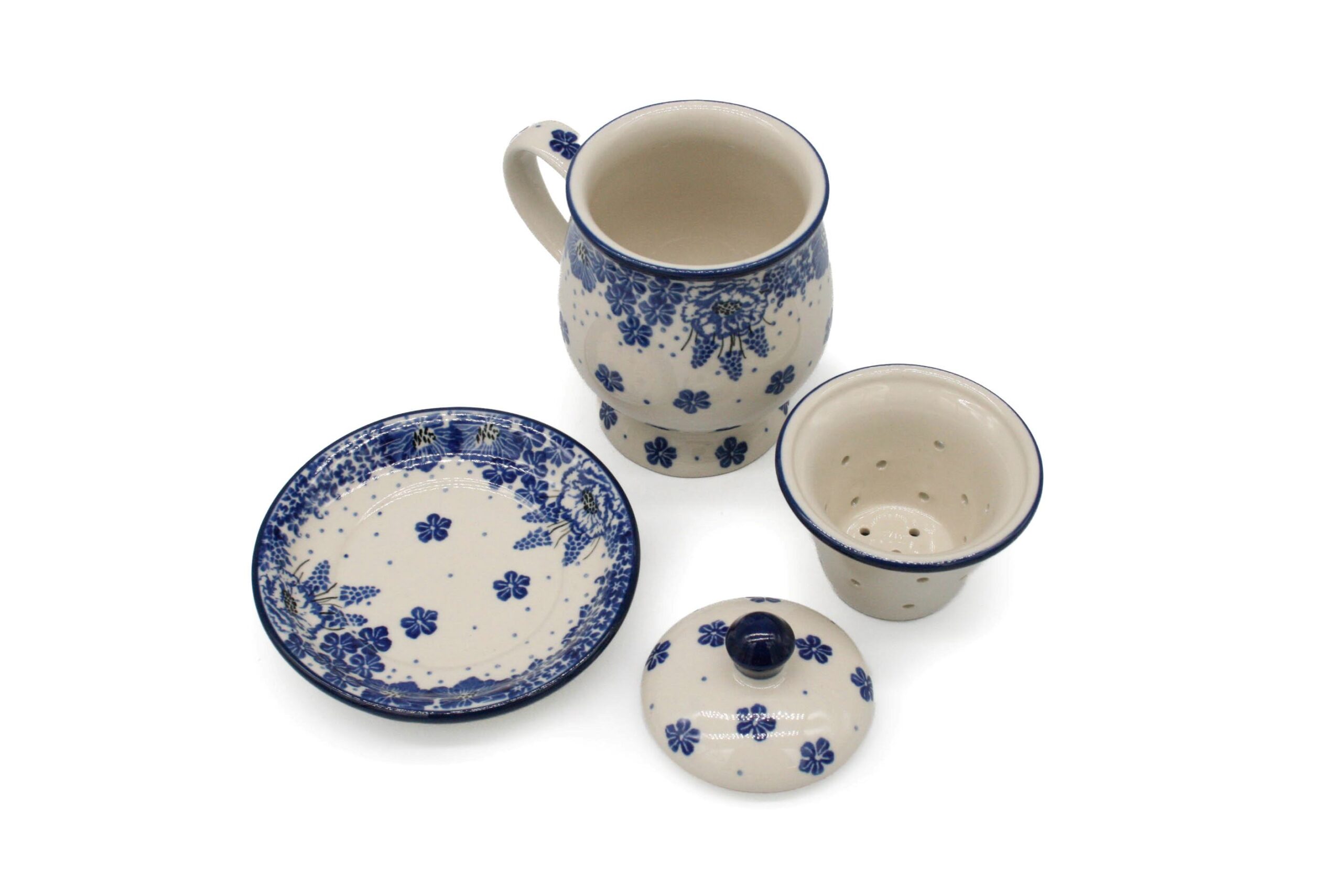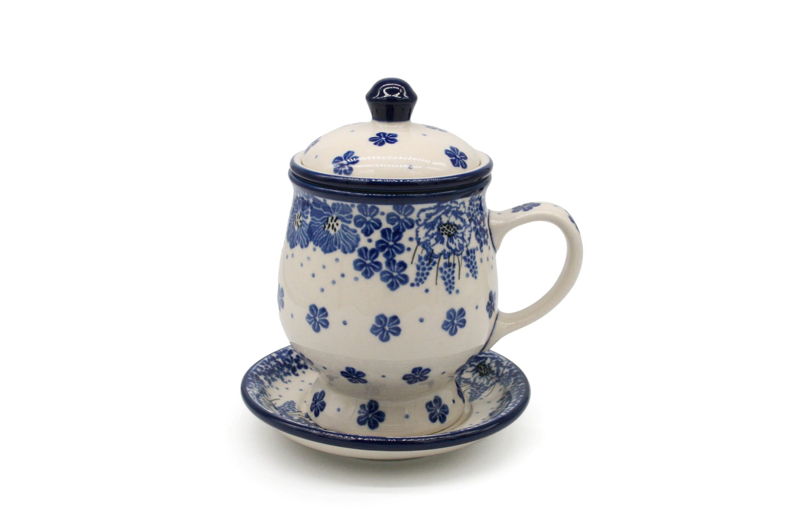 Kubek do zaparzania herbaty i ziół Eleganckie Kwiaty, Ceramika Bolesławiec