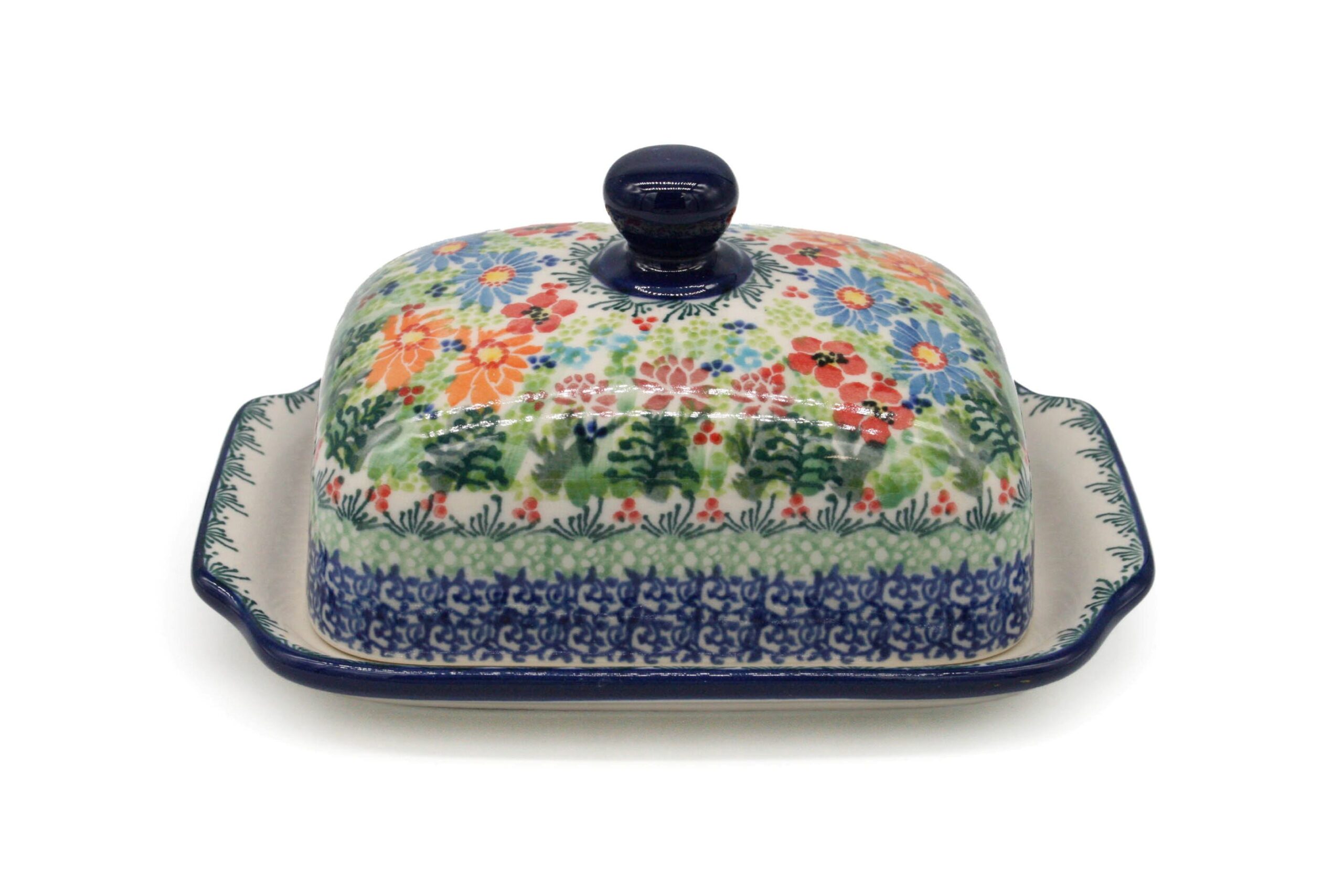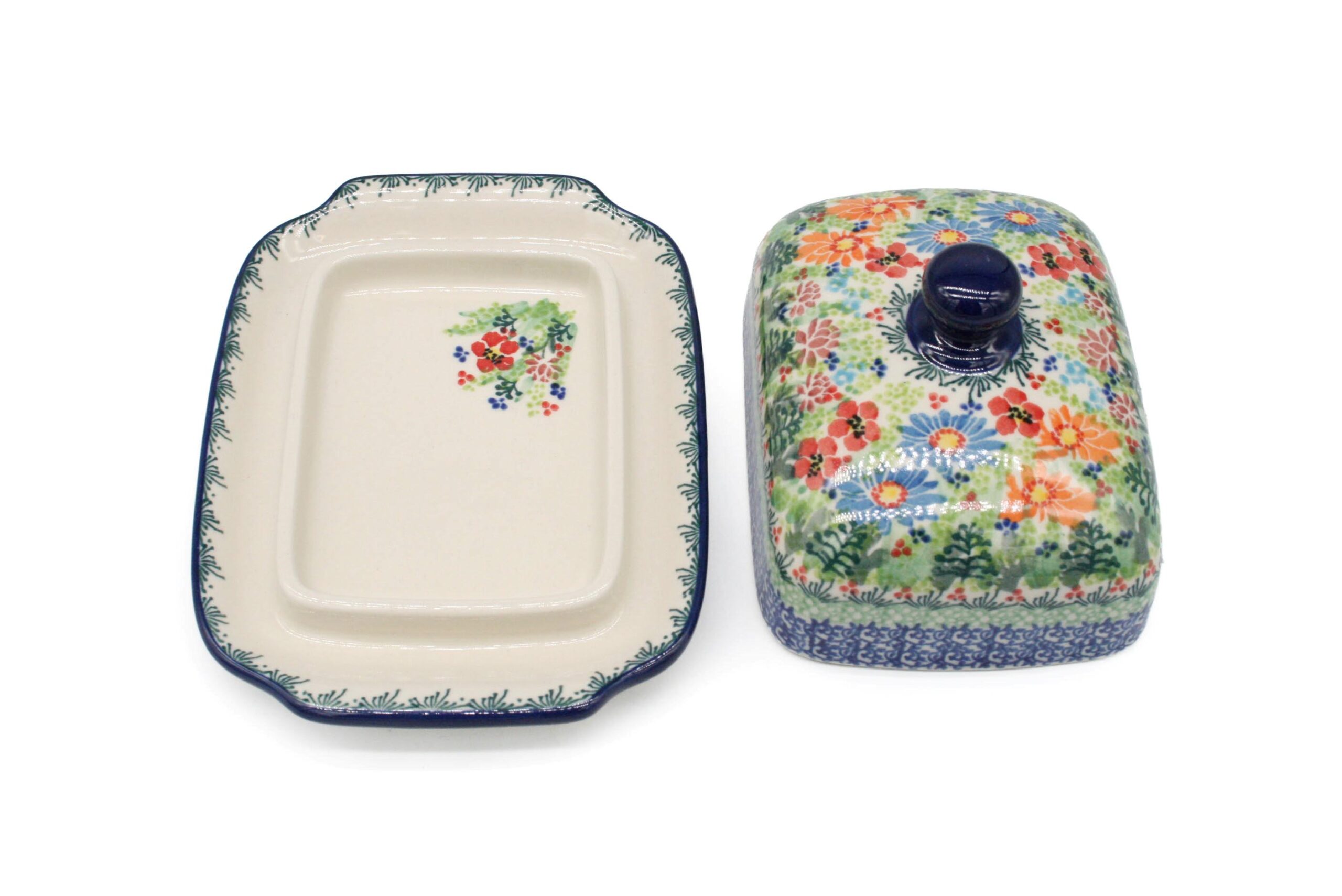 Maselniczka w pięknym, kwiatowym wzorze to wyjątkowe i przydatne naczynie. Maselniczka jest ręcznie malowana, a następnie wypalana w piecu zgodnie z tradycją ceramiki bolesławieckiej. Ceramika bolesławiecka cechuje się trwałością i jest bardzo dobrej jakości. Ładny kształt i dekoracja sprawiają, że produkt może być atrakcyjnym dodatkiem do innych przedmiotów z tej czy podobnych kolekcji. Jest oryginalnym prezentem dla bliskiej osoby.