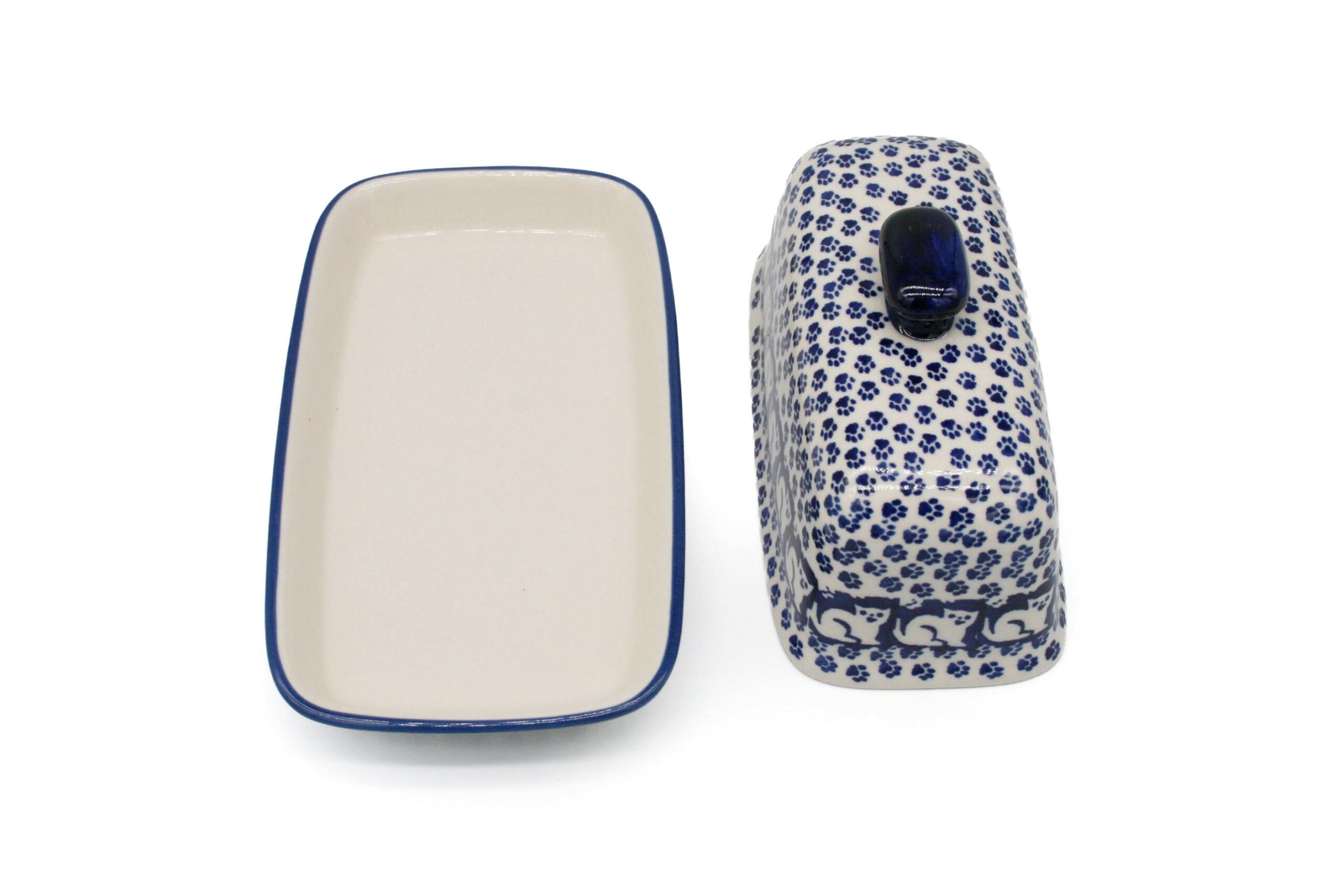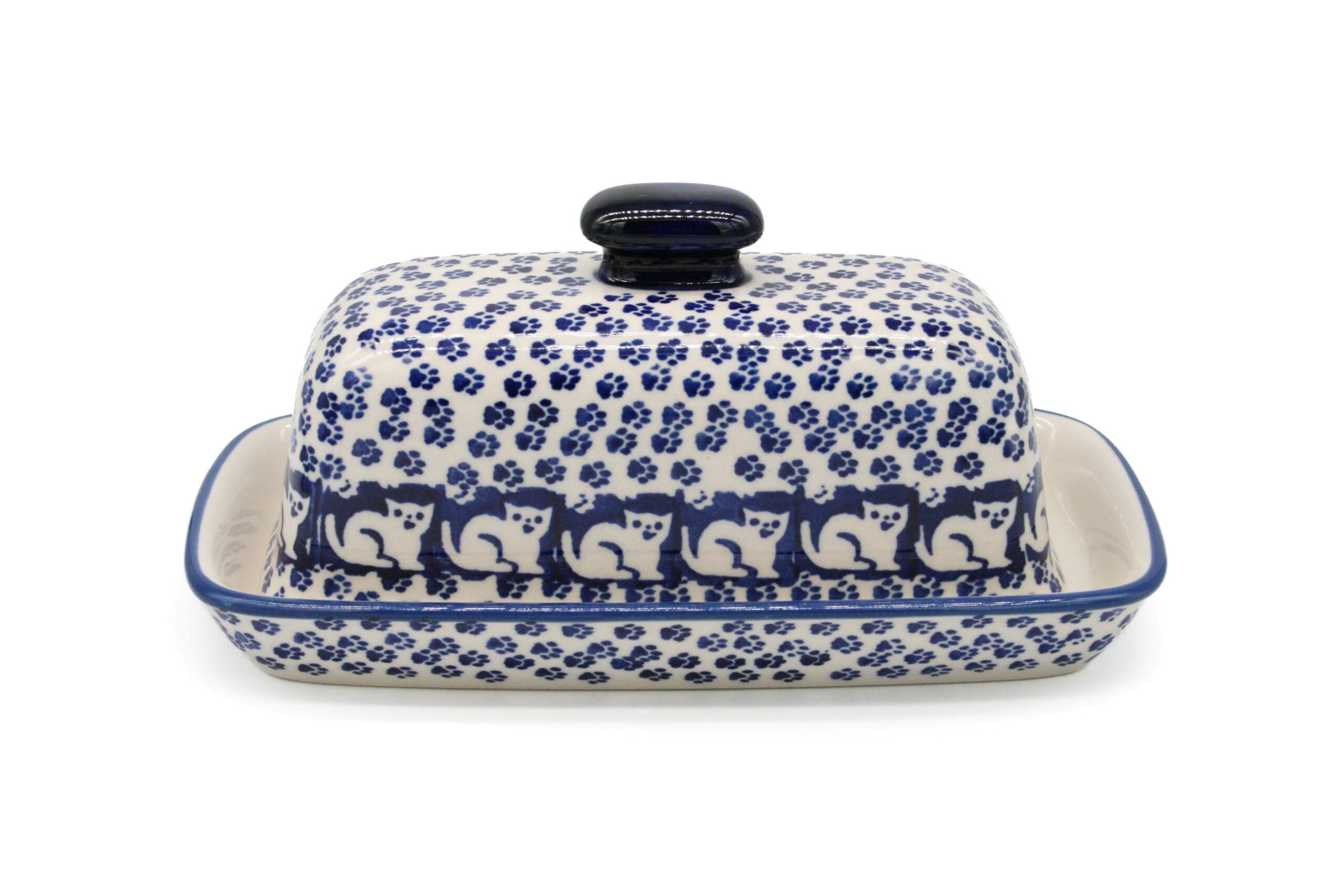 Urocza, podłużna maselniczka we wzorze z kociakami to wyjątkowe i przydatne naczynie. Maselniczka jest ręcznie malowana, a następnie wypalana w piecu zgodnie z tradycją ceramiki bolesławieckiej. Ceramika bolesławiecka cechuje się trwałością i jest bardzo dobrej jakości. Ładny kształt i dekoracja sprawiają, że produkt może być atrakcyjnym dodatkiem do innych przedmiotów z tej czy podobnych kolekcji. Może być oryginalnym prezentem dla bliskiej osoby.