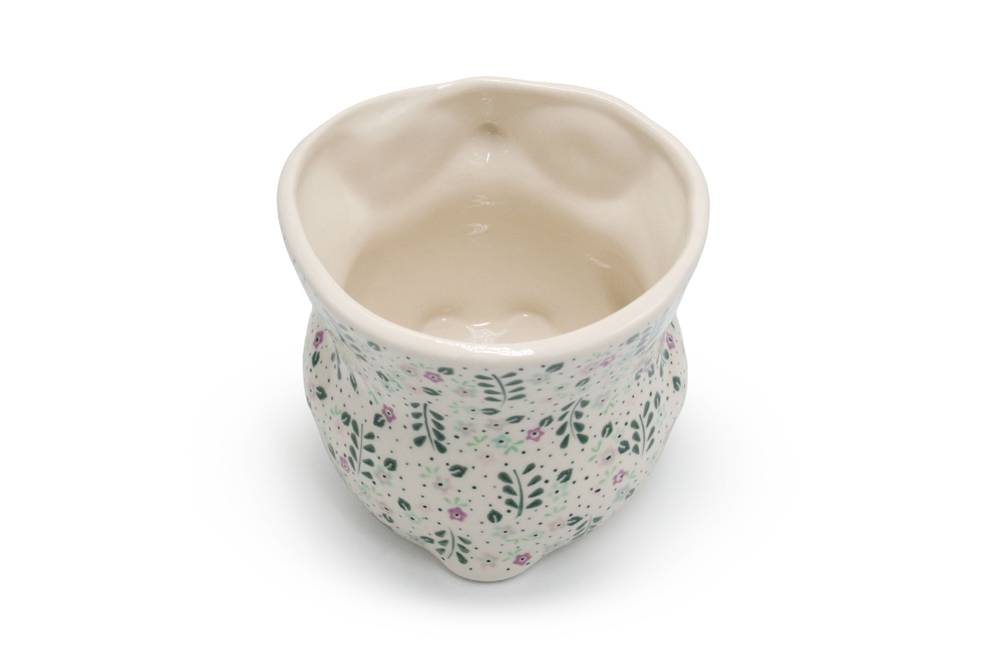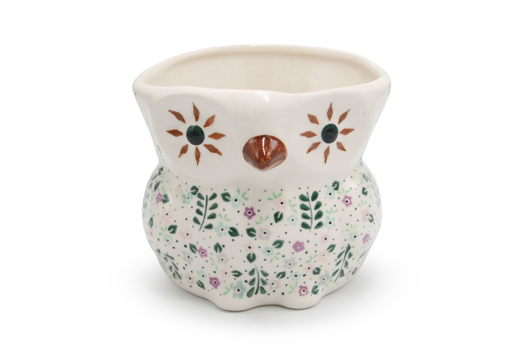 Osłonka na doniczkę w kształcie sowy Delikatna Łąka, Ceramika Bolesławiec