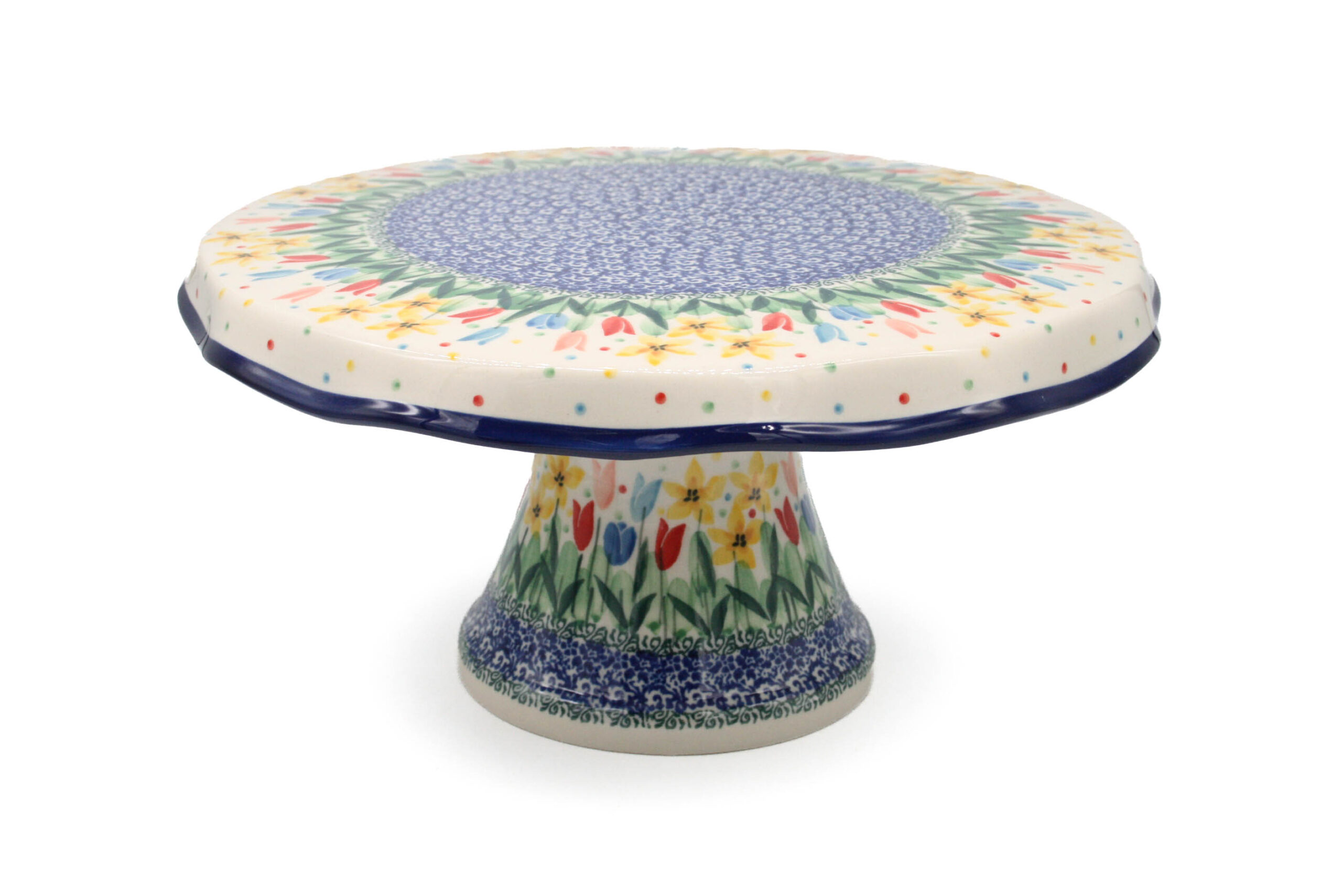 Piękna patera na tort udekorowana wzorem z żonkilami i tulipanami. Patera jest bardzo obszerna i wygodna w użyciu. Tortownica jest ręcznie malowana i formowana, a następnie wypalana w piecu zgodnie z tradycją ceramiki bolesławieckiej. Ceramika bolesławiecka cechuje się trwałością i jest bardzo dobrej jakości. Patera przyda się na torty, ciasta, ciasteczka i inne słodkości. Wyjątkowo piękny wzór sprawiają, że patera może okazać się wyjątkowym prezentem dla bliskiej osoby.