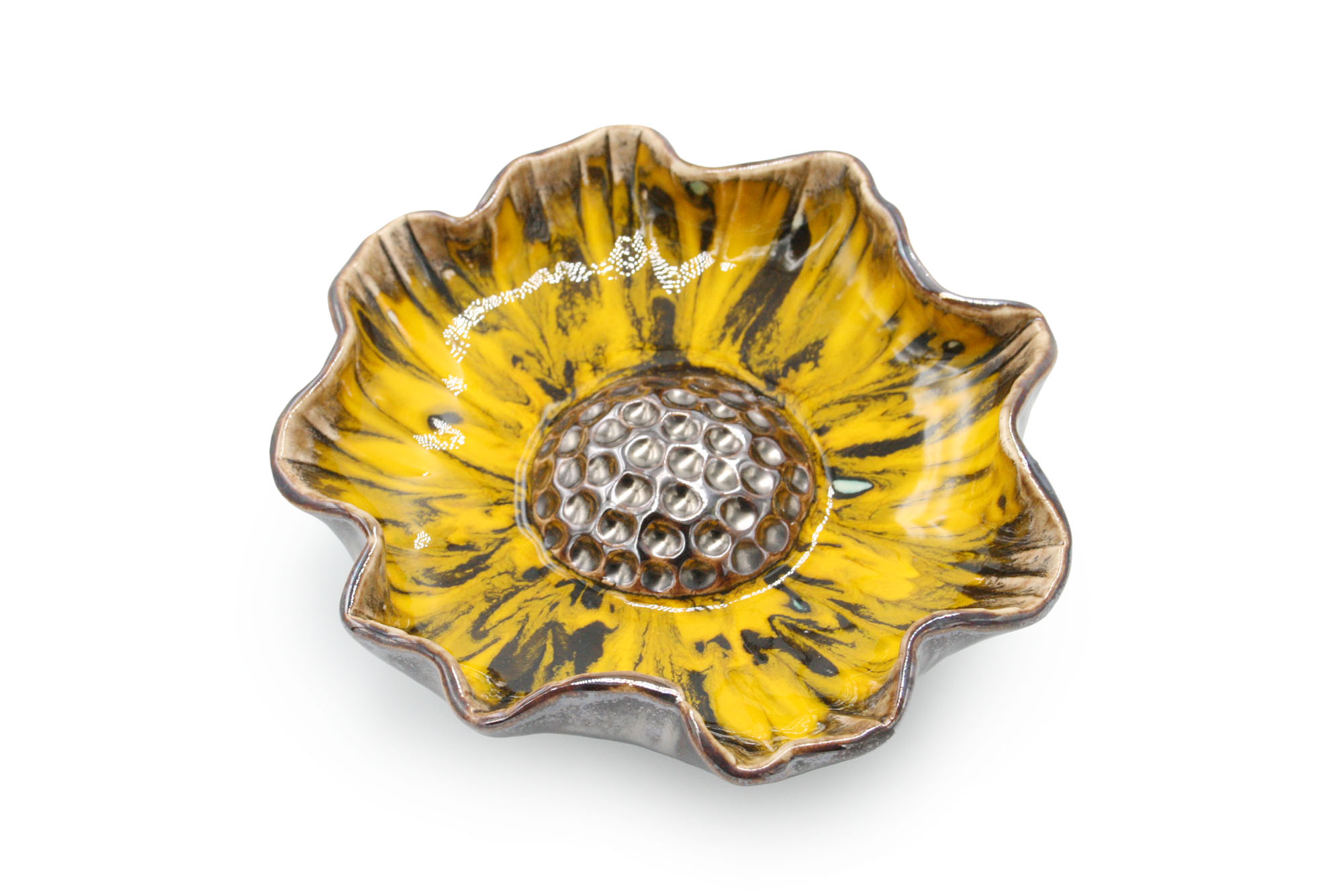 Piękne, unikatowe, ceramiczne poidełko dla ptaszków, robione ręcznie przez artystów. Poidełko posiada otwór na kijek bambusowy, który umożliwia przytwierdzenie w ziemi. Może być piękną ozdobą w każdym domu i dobrym, praktycznym prezentem dla bliskiej osoby.
