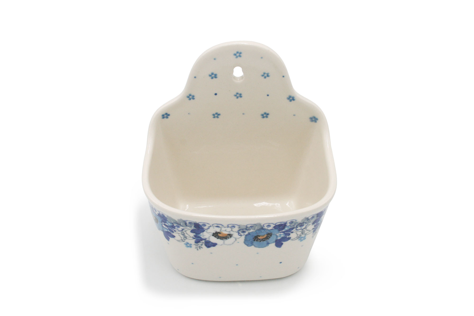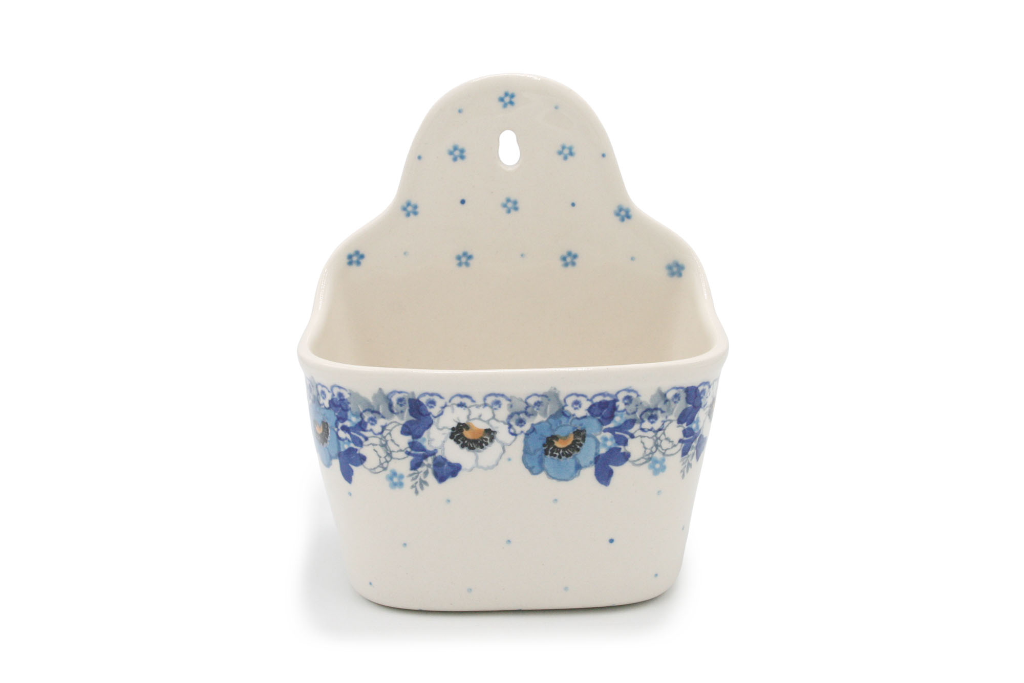 Pojemnik na sól Białe i Niebieskie Kwiaty, Ceramika Bolesławiec