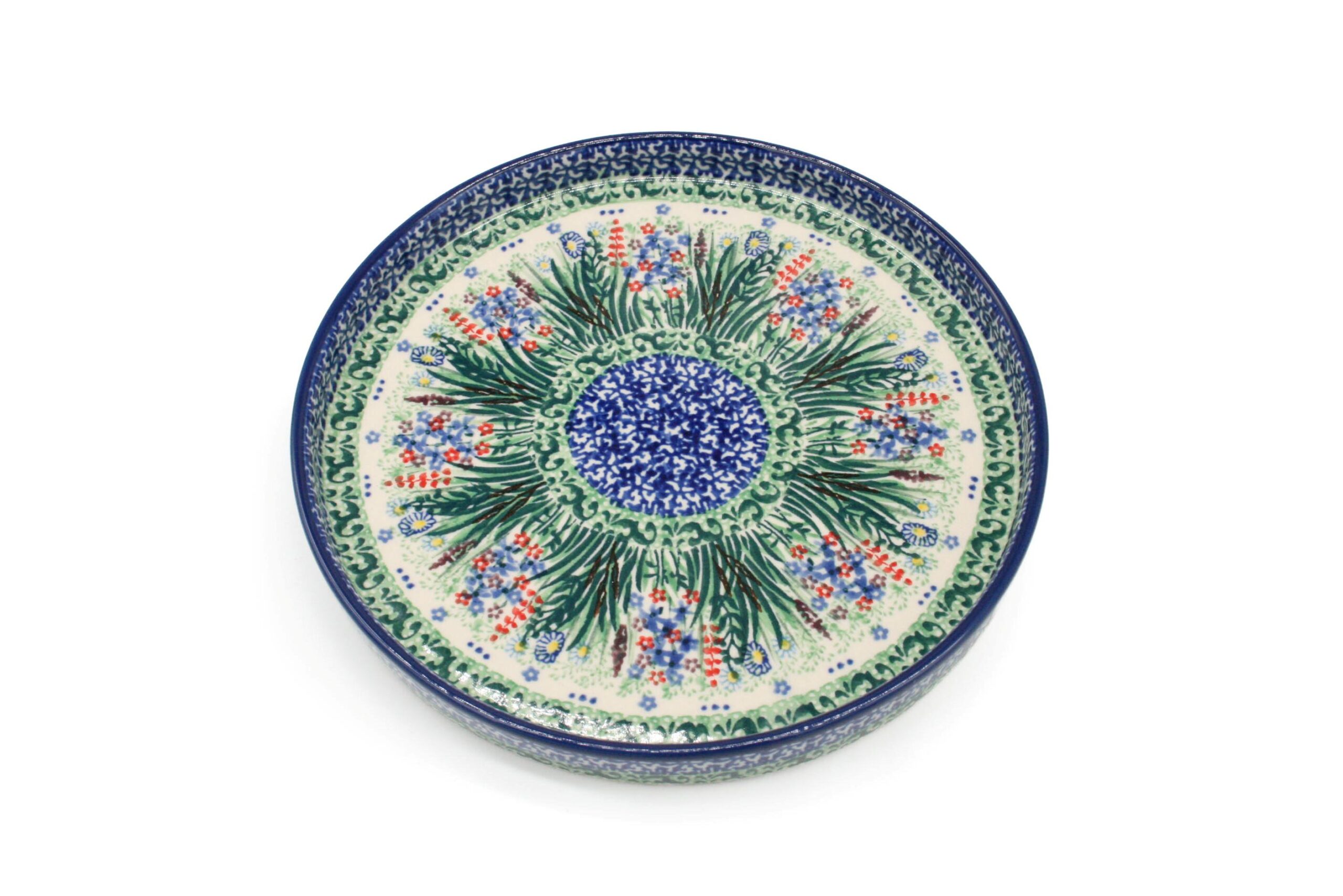Piękny półmisek ozdobiony wzorem przypominającym polanę. Półmisek jest wykonany i malowany ręcznie. Naczynie jest przykładem ceramiki bolesławieckiej, która cechuje się trwałością i jest bardzo dobrej jakości. Ceramiczny półmisek to piękna ozdoba, jest idealny na ciasto, przekąski, słodycze lub jako dekoracja. Może być dobrym i praktycznym prezentem dla bliskiej osoby.