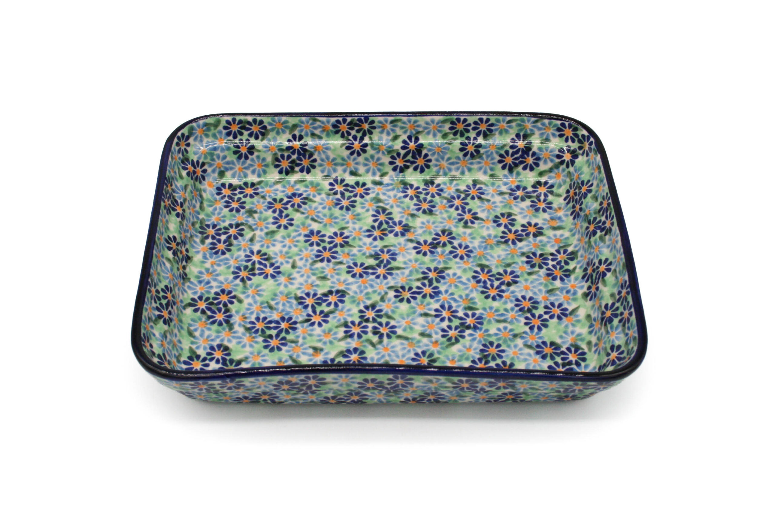 Średni zapiekacz prostokątny, wzór Zielono – Niebieski, Ceramika Bolesławiec