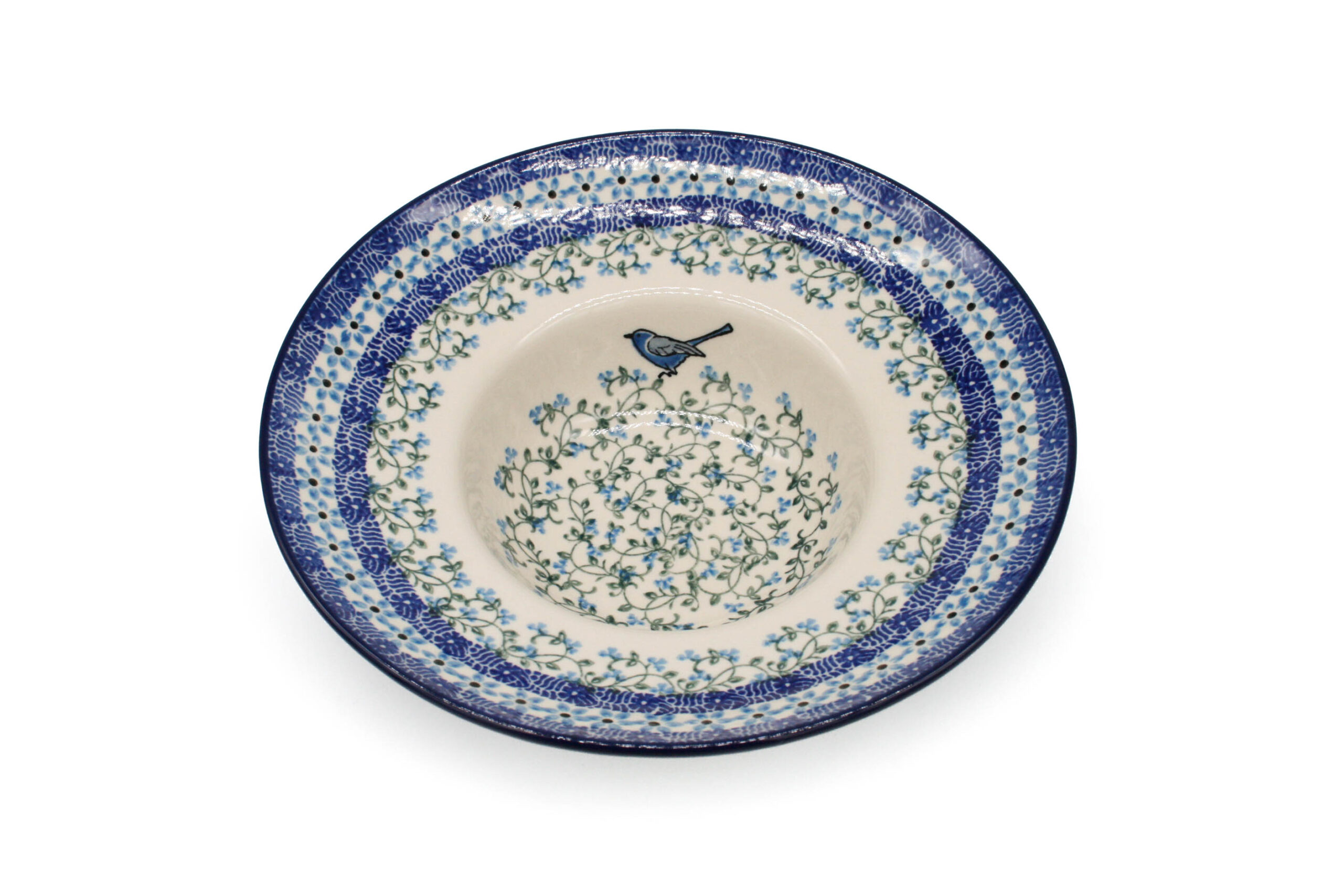 Piękny, dekoracyjny, głęboki talerz na spaghetti ozdobiony kwiatowym, niebieskim wzorem z małym ptaszkiem. Talerz jest malowany w całości ręcznie. Talerz jest przykładem ceramiki bolesławieckiej, która cechuje się trwałością i jest bardzo dobrej jakości. Produkt może być dobrym prezentem dla bliskiej osoby.