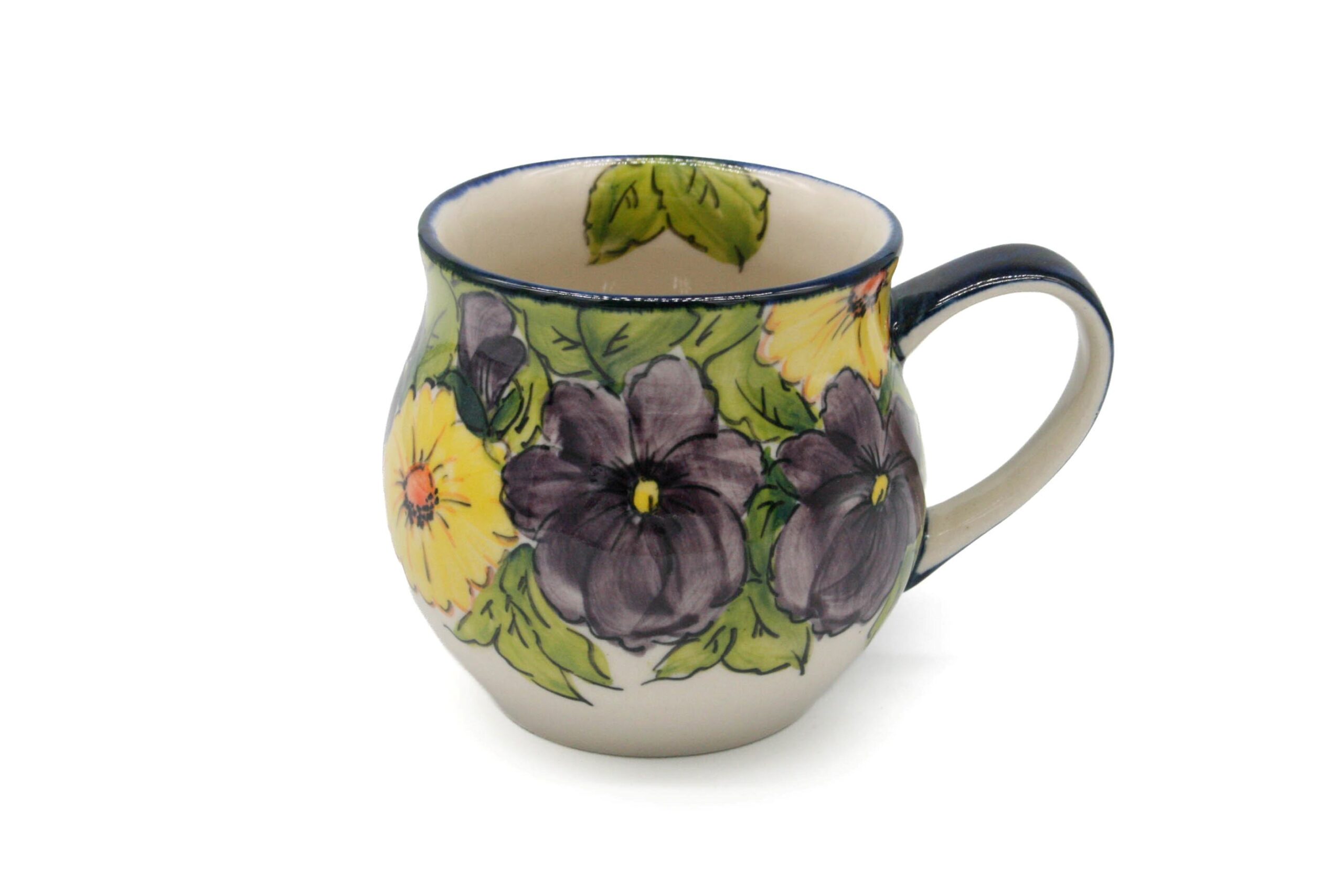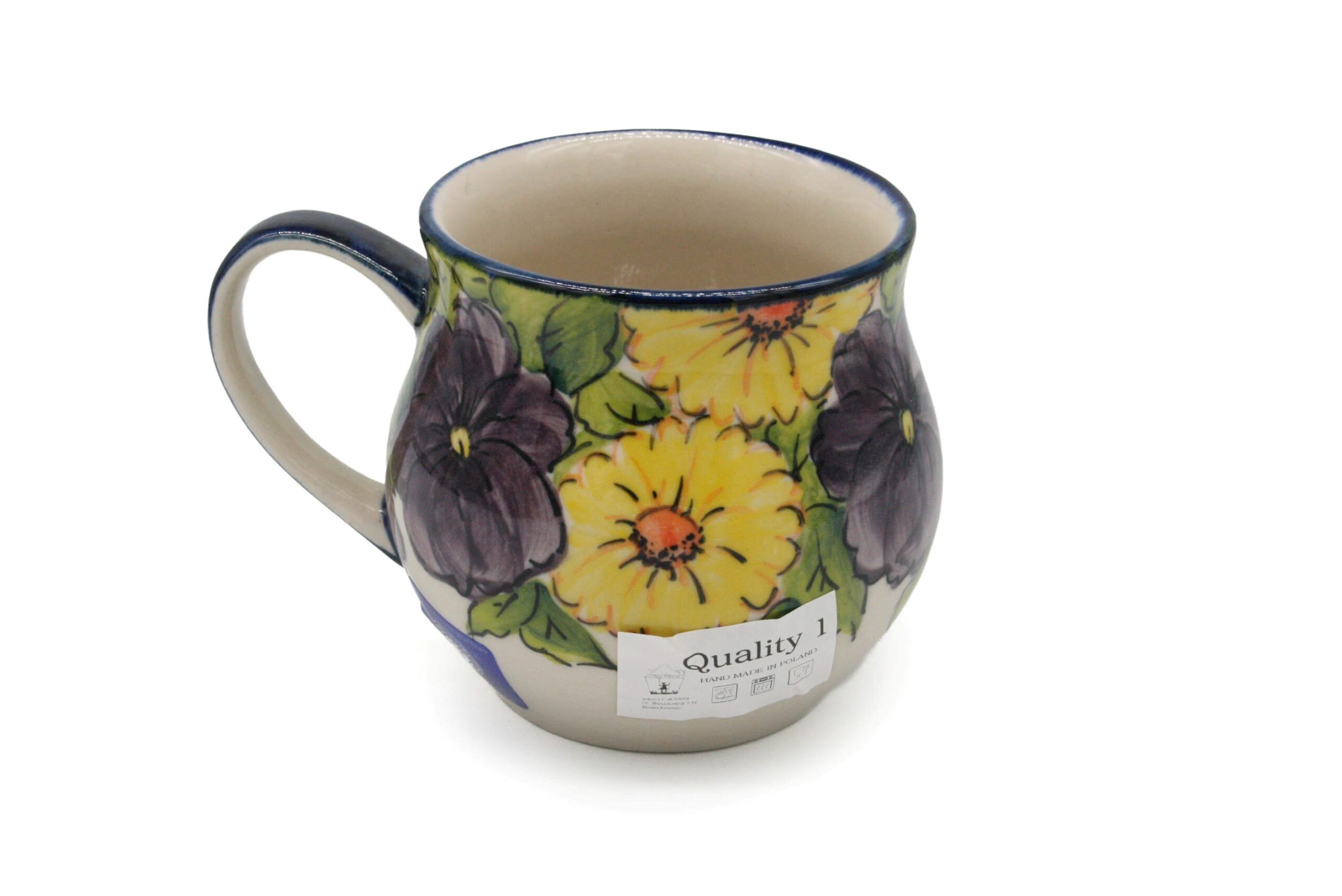 Unikatowy kubek Fioletowe i Żółte Kwiaty, Ceramika Bolesławiec