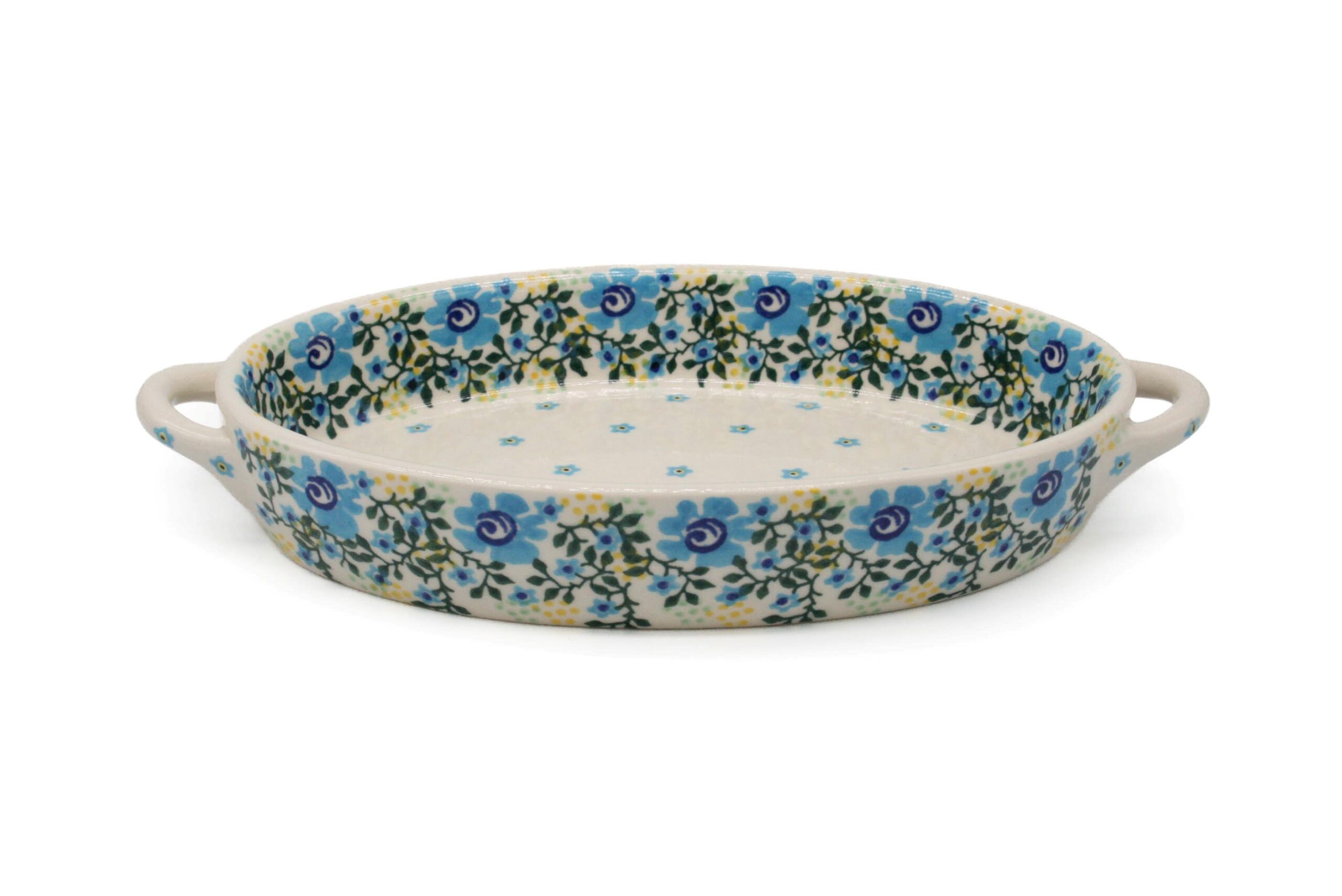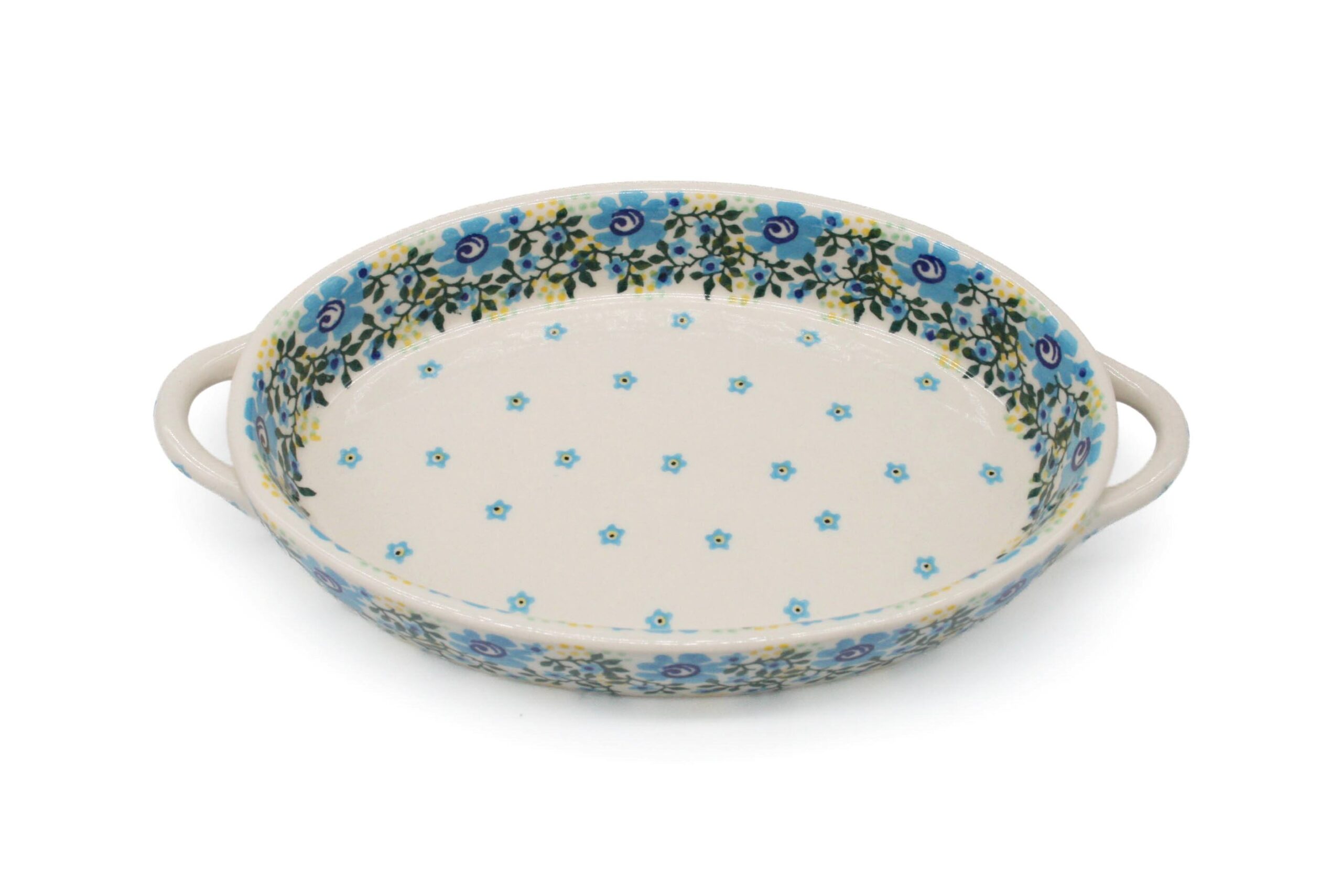 Uniwersalny zapiekacz owalny z uszami Niebieski Kwiatowy Wianuszek, Ceramika Bolesławiec